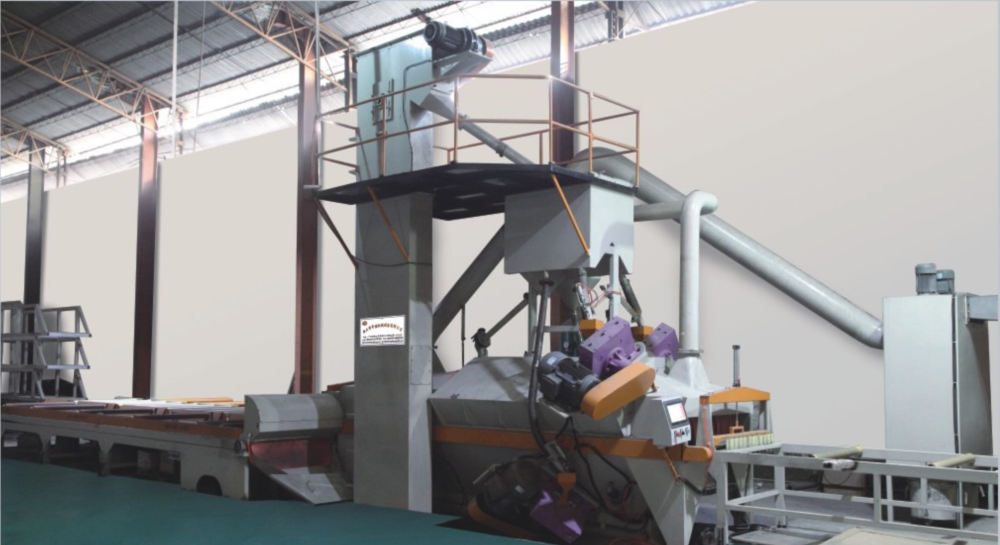 La machine est principalement composée dun châssis principal de sablage, dun élévateur, dune table dentrée et de sortie, dune table de coulée du sable, dun système de dépoussiérage et dune armoire de commande électrique.