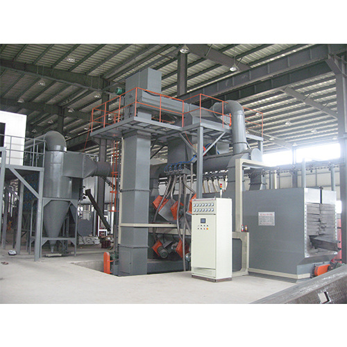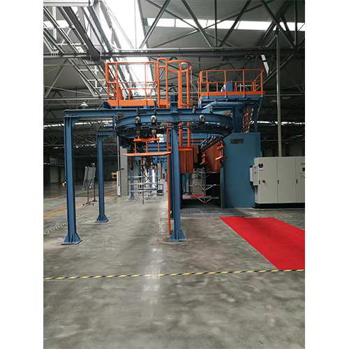 Continu signifie que la pièce est suspendue à un crochet de chaîne et passe continuellement dans la chambre de grenaillage à une vitesse constante. Une fois que la pièce entre dans la chambre de nettoyage, elle est entraînée vers lavant par le mécanisme rotatif et tourne tout en recevant le nettoyage.