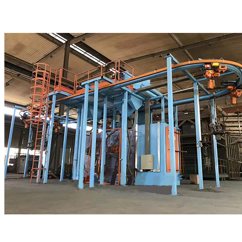 La grenailleuse à piste annulaire peut être utilisée pour le nettoyage et le renforcement de la surface des pièces coulées et forgées de grande et moyenne taille et des pièces de structure en acier dans des industries telles que la fabrication de machines, les appareils à pression, les automobiles, les navires, la construction et les moteurs électriques. Il est utilisé pour améliorer la qualité daspect et les conditions de traitement de surface des pièces du produit. Pour les grandes pièces qui peuvent être suspendues, deux palans électriques peuvent être utilisés pour hisser les pièces vers la zone de grenaillage et les nettoyer par grenaillage. Un certain nombre de têtes de turbines sont disposées par simulation informatique. Toutes les surfaces de la pièce peuvent être nettoyées en profondeur afin déliminer la rouille et la corrosion de lacier, les vieilles peintures et autres saletés. Ladoption dune technologie brevetée de protection de la cavité et de la structure détanchéité confère à léquipement une structure avancée, une grande efficacité de production, une bonne qualité de nettoyage et un haut degré dautomatisation.